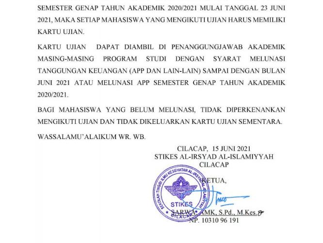 Pemberitahuan Pengembalian Kartu Ujian UAS