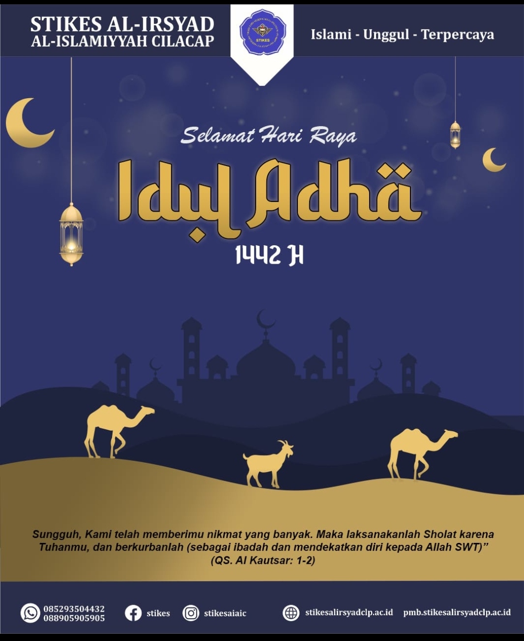 Selamat Hari Raya Idul Adha 1442 H Idul Adha adalah saat untuk merayakan semangatmu dalam berkurban, harapanmu pada ampunan, dan keteguhanmu dalam beriman. Pimpinan dan Civitas Akademika mengucapkan Selamat Hari Raya Idul Adha 1442 H More info:Sekretariat :STIKES Al-Irsyad Al-Islamiyyah CilacapJl. Cerme No. 24 Sidanegara CilacapPhone. : 0282 532975Telp/WA. : 085293504432Hotline. : 088905905905Website : www.stikesalirsyadclp.ac.idwww.pmb.stikesalirsyadclp.ac.idEmail...