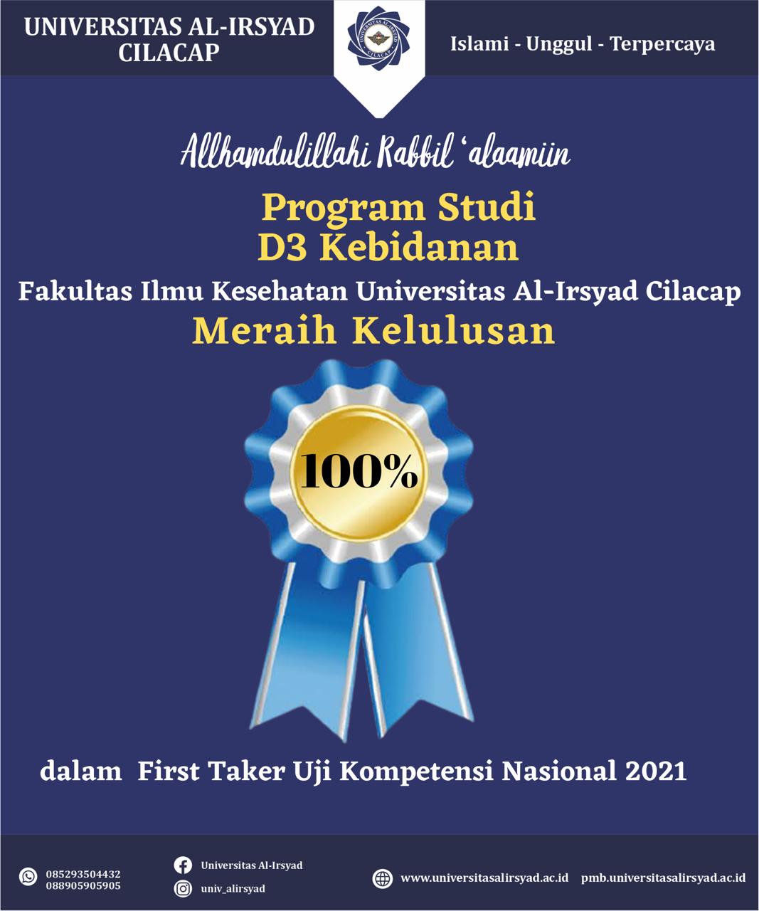 Bidan Lulus Ukom 100% Alhamdulillahi rabbil ‘alaamin Program Studi D3 Kebidanan Fakultas Ilmu Kesehatan Universitas Al-Irsyad Cilacap meraih kelulusan 💯% Dalam first taker ujian kompetensi Nasional tahun 2021 “Universitas Al-Irsyad Cilacap” Menebar Inspirasi Keseluruh Penjuru Negeri More info: Sekretariat : Universitas Al-Irsyad Cilacap Jl. Cerme No. 24 Sidanegara Cilacap Phone. : 0282 532975 Telp/WA. :...