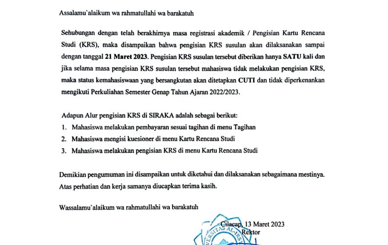 PEMBERITAHUAN PELAKSANAAN UJIAN TENGAH SEMESTER GANJIL TAHUN AKADEMIK 2025/2026