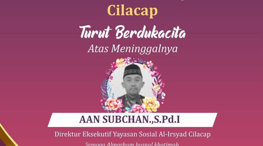 Innalillahi wa inna ilaihi raji’un. Rektor dan Segenap Civitas Akaemika Turut berduka cita yang sedalam-dalamnya atas meninggalnya Direkrut Eksekutif Yayasan Al-Irsyad Cilacap; Bapak Aan Subchan, S.Pd.I Semoga almarhum husnul khotimah, diampuni segala dosanya, diterima amal ibadahnya dan ditempatkan di Surganya Allah SWT. Keluarga yang ditinggal diberikan kesabaran, keikhlasan dan ketabahan. Aamiin