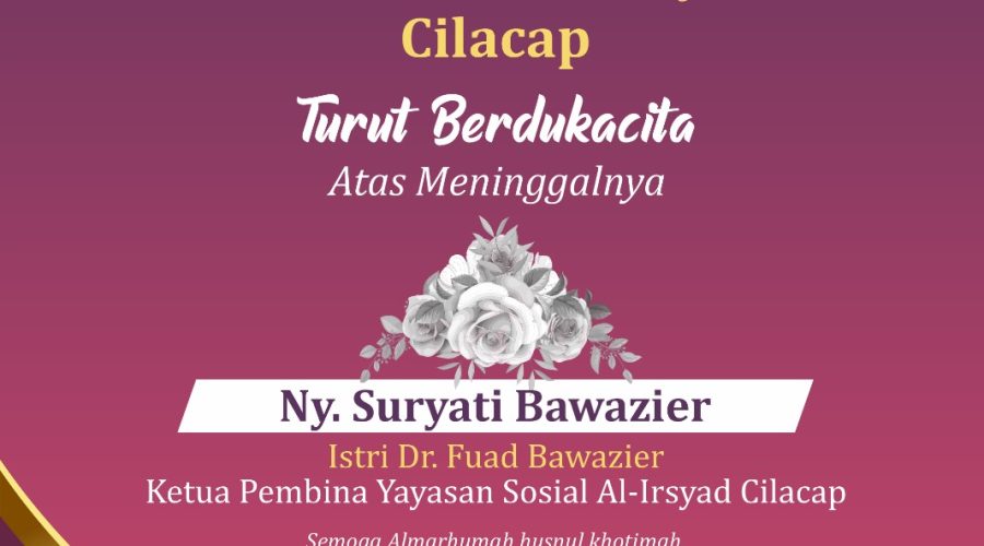 Innaa Lillahhi Wa Innaa Ilaihi Rooji`un Rektor dan Segenap Civitas Akademika Universitas Al-Irsyad Cilacap turut berdukacita atas meninggalnya: Ny. Suryati Bawazier Istri dari Dr. Fuad Bawazier Ketua Pembina Yayasan Sosial Al-Irsyad Cilacap Semoga almarhumah husnul khotimah, diampuni segala dosanya, diterima amal ibadahnya dan ditempatkan di Surganya Allah Subhanahuwata’ala. Keluarga yang ditinggalkan diberikan kesabaran, keikhlasan dan...
