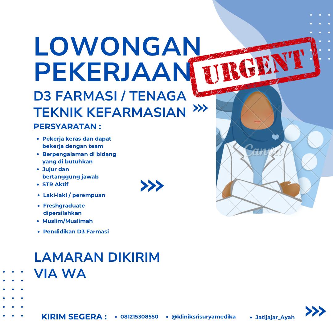 Klinik Srisurya Medika membuka kesempatan berkarier bagi lulusan D3 Farmasi atau Tenaga Teknik Kefarmasian untuk bergabung bersama tim profesional kami.