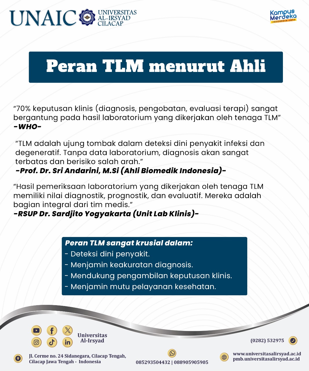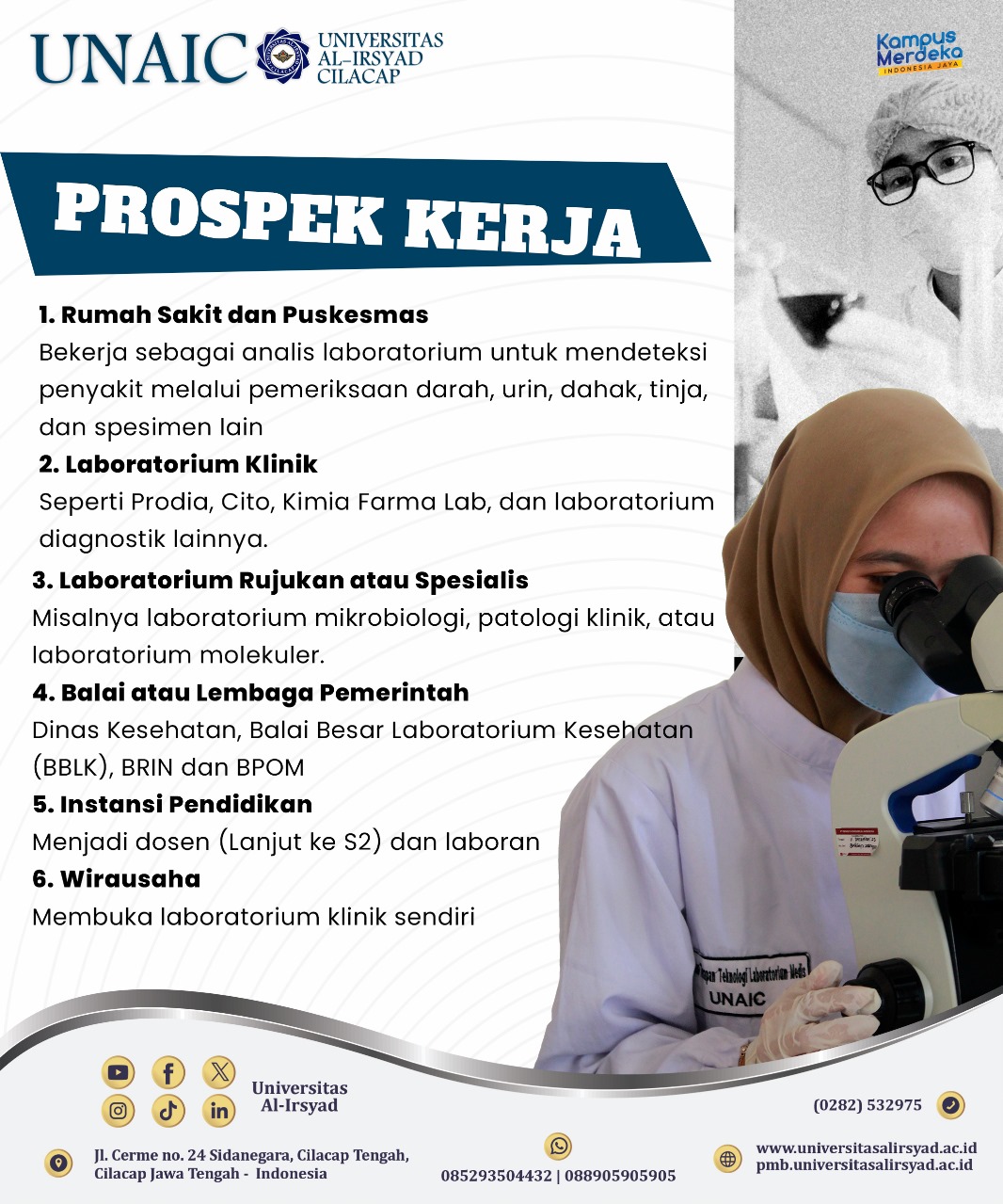 Dan yang pasti… jangan lupa daftar sekarang di Prodi Teknologi Laboratorium Medis Universitas Al-Irsyad Cilacap (UNAIC)