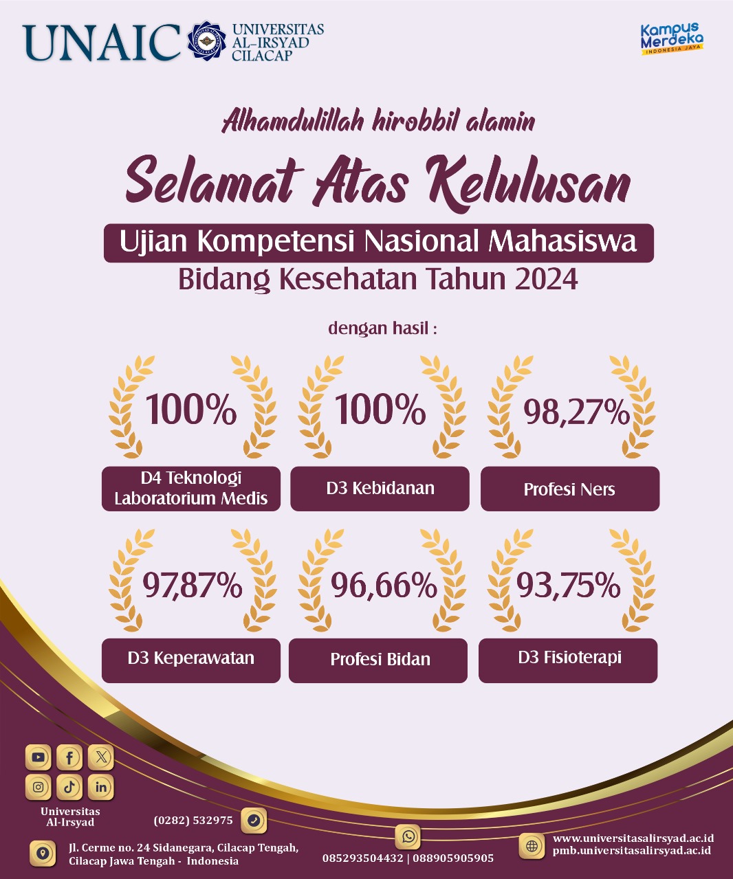 Alhamdulillah pengumuman hasil Uji Kompetensi Nasional Mahasiswa Bidang Kesehatan sudah terbit dan untuk mahasiswa UNAIC bisa lulus mencapai lebih dari 90% bahkan 100%