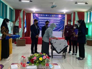 Penandatanganan serah terima jabatan disahkan oleh Ibu Yogi Andhi Lestari, S.SiT., M.Keb. selaku Wakil Rektor Bidang Kemahasiswaan dan Pembina Organisasi Mahasiswa baik dari Himpunan Mahasiswa Program Studi yang berjumlah 8 HIMA maupun dari Unit Kegiatan Mahasiswa tingkat Universitas yang berjumlah 11 UKM. Dilanjutkan pelantikan dan sambutan Presiden BEM terpilih Periode 2022, saudara Fandi Rahmanto dari Prodi S1 Keperawatan.